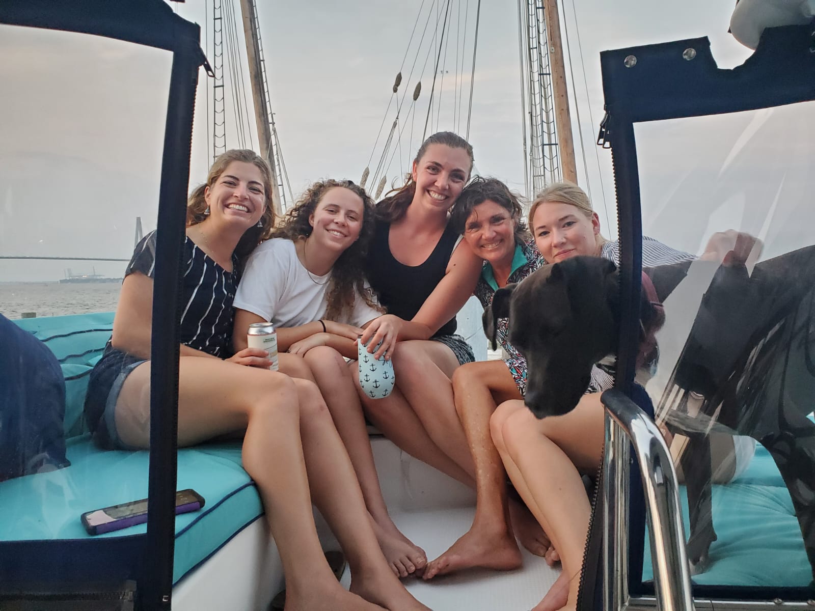 Steve and Our Grandpuppy, Mae at Anchor in Charleston |